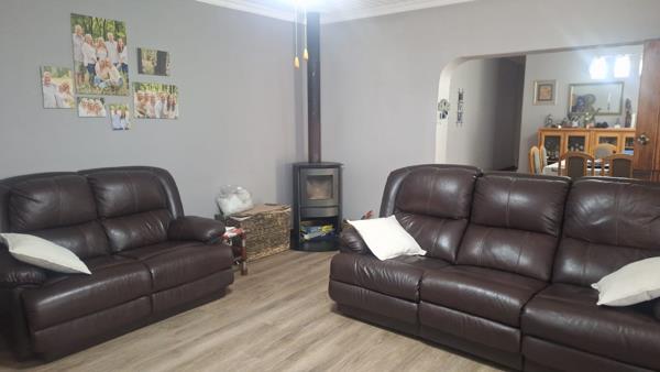 The home features a large open-plan lounge and dining room, ideal for family gatherings. The lounge is warm and inviting, complete with a Morso fireplace for those cozy winter evenings, while the dining area boasts beautiful parquet flooring. Theres also a study, perfect for working from home or as a quiet reading space.