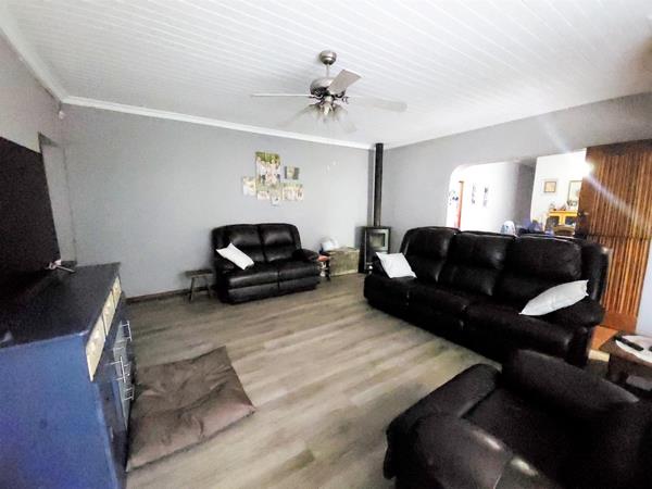 The lounge has laminated flooring and an overhead fan plus the fireplace. Adjacent to this is a spacious office for a work from home scenario or as a hobby room.The dining room is spacious and sunny and features gorgeous, original parquet flooring.