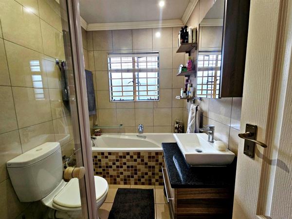 The bedrooms are sunny and spacious with modern cupboards and plenty of space. The bathroom is also beautifully finished and has both a bath and a shower.