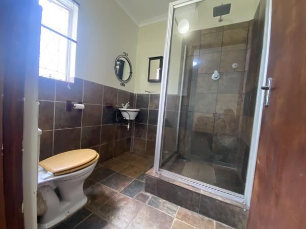 The entertainment area with a built-in braai creates the perfect space for hosting family and friends while overlooking the well-maintained garden and heated swimming pool ideal for year-round enjoyment.