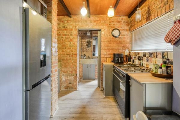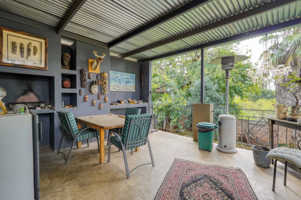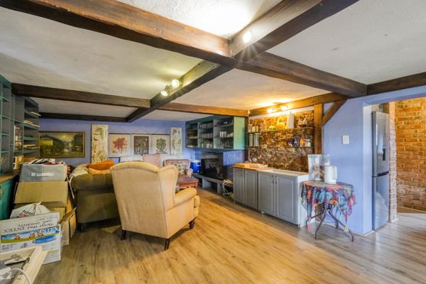 Downstairs, the lower section of the home has been set up as a separate flatlet. This space includes one bedroom, one bathroom, and an open plan lounge and kitchen fitted with a gas stove and its own gas geyser. The flatlet opens onto its own patio with a built in braai, creating a private and self contained living area.