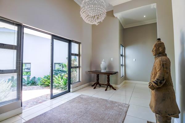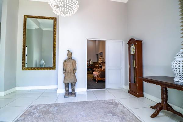 From the moment you enter, the home makes a striking impression. A statement glass chandelier sets the tone, illuminating the sophisticated interiors and premium floor finishes that flow seamlessly throughout. Just off the grand entrance, a spacious and secure study offers both functionality and peace of mind, complete with a discreet walk-in safe.