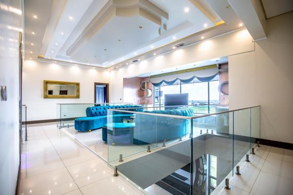 5 of the 6 opulent bedrooms are located on the top floor, all en suite, with ample cupboards and all with their bespoke finishes and designer look. A TV lounge upstairs enjoys the views of the living spaces. The houses also offers a prayer room, domestic quarters and additional gardener room outside as well as 4 garages.
