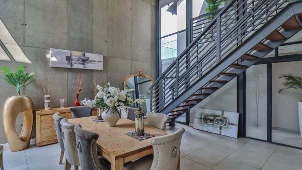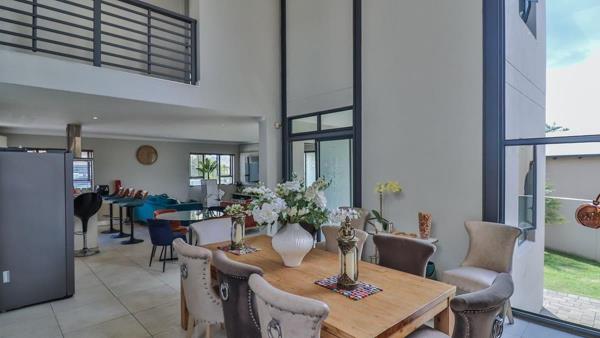 Double volume Dining area with large windows and slider to bar area