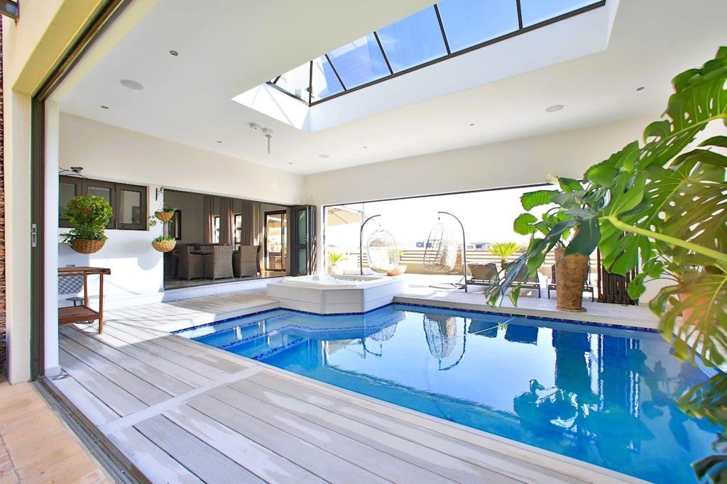 Indoor sparkling salt water pool and jacuzzi