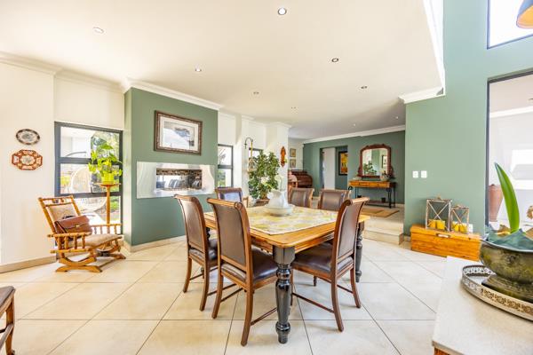 The home boasts five spacious bedrooms, three of which are en-suite, including a primary suite that offers some of the finest estate views, ensuring a serene retreat. A dedicated study, bathed in natural light, provides the ideal work-from-home environment, while staff accommodation enhances convenience. For added practicality, the property includes a three-door, extra-depth garage for ample vehicle and storage space, approved building plans for a gym, and sustainable features like a full solar system, water backup tanks, and a borehole for irrigation, minimizing environmental impact and reducing utility costs.