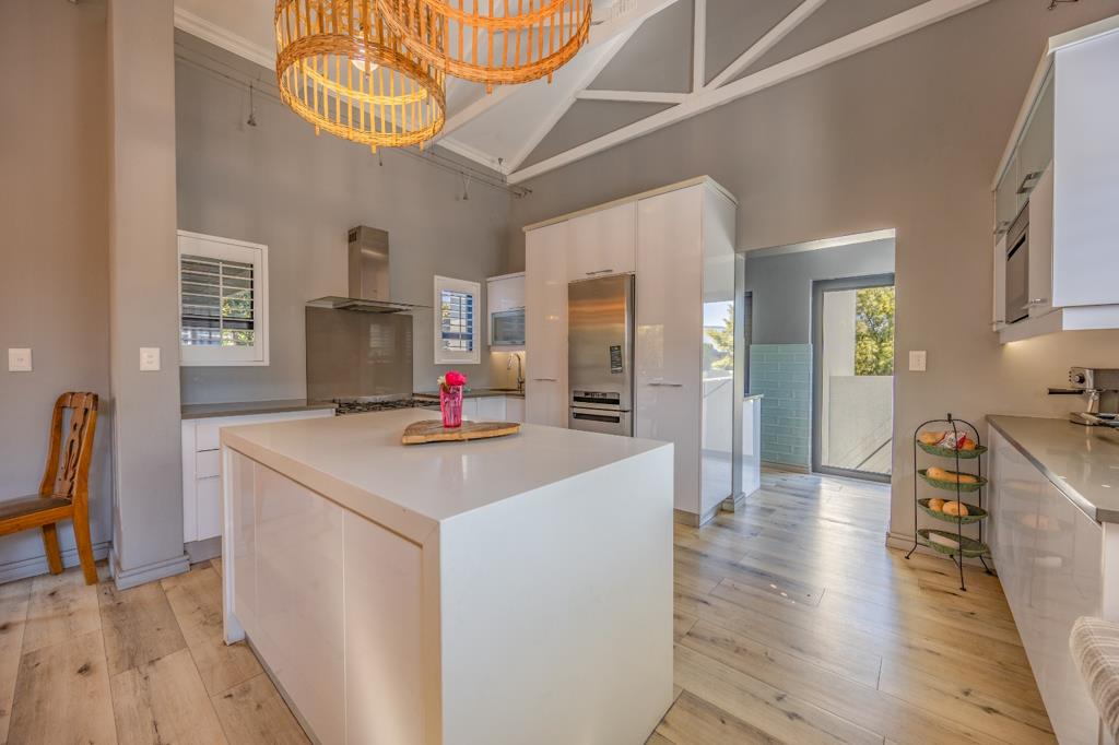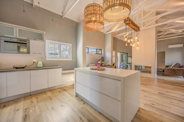 Step into an open-plan living area that exudes airy sophistication, thanks to its double-volume ceilings and north-facing orientation, which floods the space with natural light. The absence of carpet throughout ensures a sleek, low-maintenance finish, while the gas fireplace in the lounge creates a cozy ambianceperfect for curling up with a book or enjoying a movie night. The living area seamlessly flows into both the front and back gardens, creating an inviting space for kids to play or for hosting unforgettable gatherings.