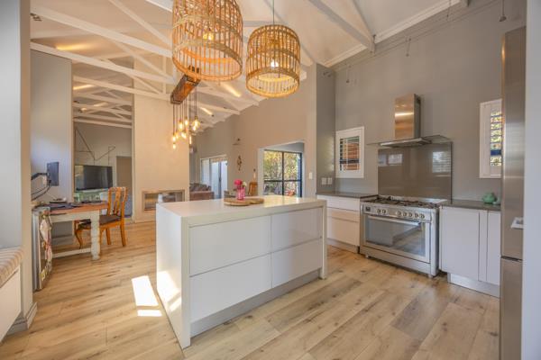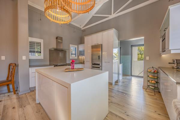 The heart of this home is its stunning kitchen, boasting timeless finishes and an abundance of cupboard space that exceeds expectations. A cleverly designed scullery tucked at the back provides room for three under-counter appliances and leads to a dedicated washing and drying area, ensuring practicality meets style.