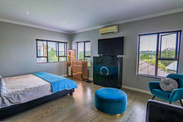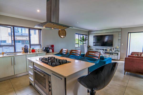 4 Bedroom House for Sale in Copperleaf Estate. This four-bedroom home in the prestigious Copperleaf Golf Estate offers a perfect blend of modern elegance and comfort. The open-plan kitchen, dining, and living areas seamlessly flow onto a covered patio with a built-in braai, creating an ideal space for entertaining.