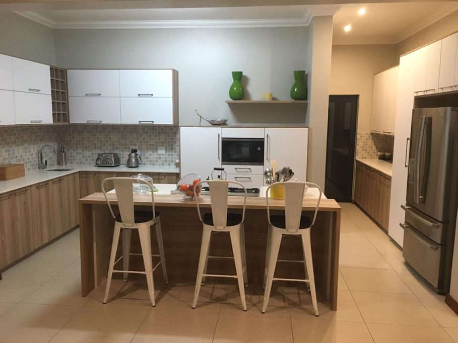 The modern kitchen is a chefs dream, equipped with high-end appliances and stylish finishes, complete with a separate scullery for added convenience. The ground floor also features a spacious guest suite, offering privacy and comfort for visitors or extended family.