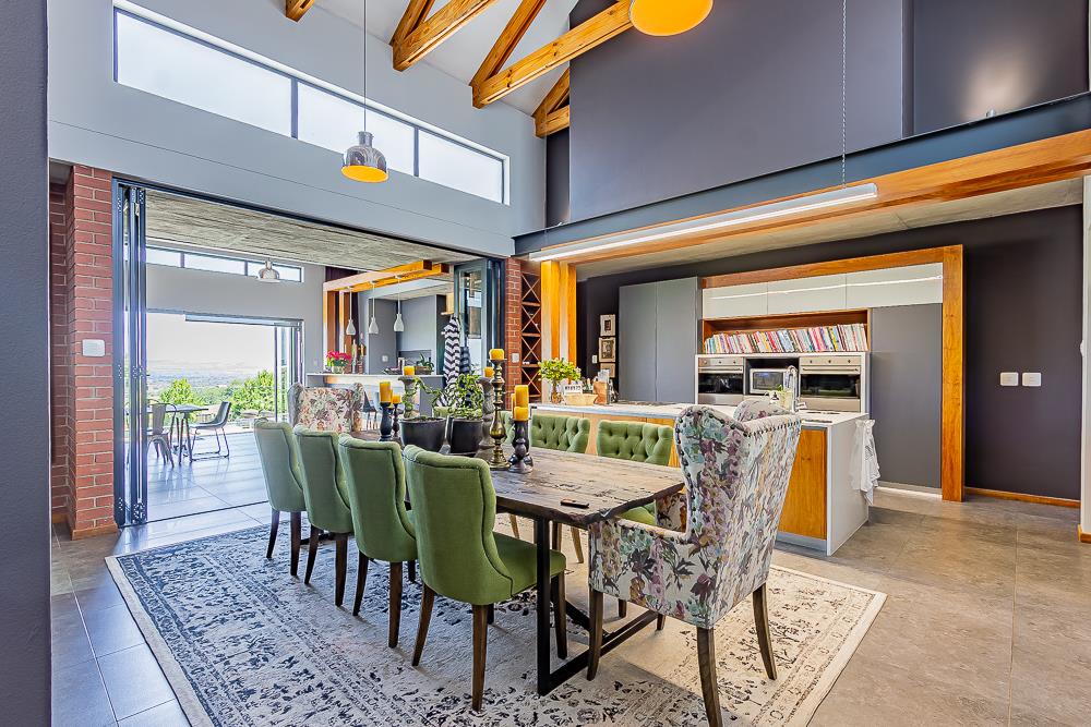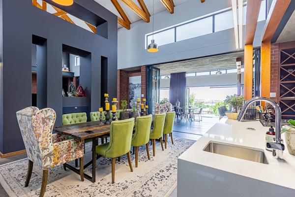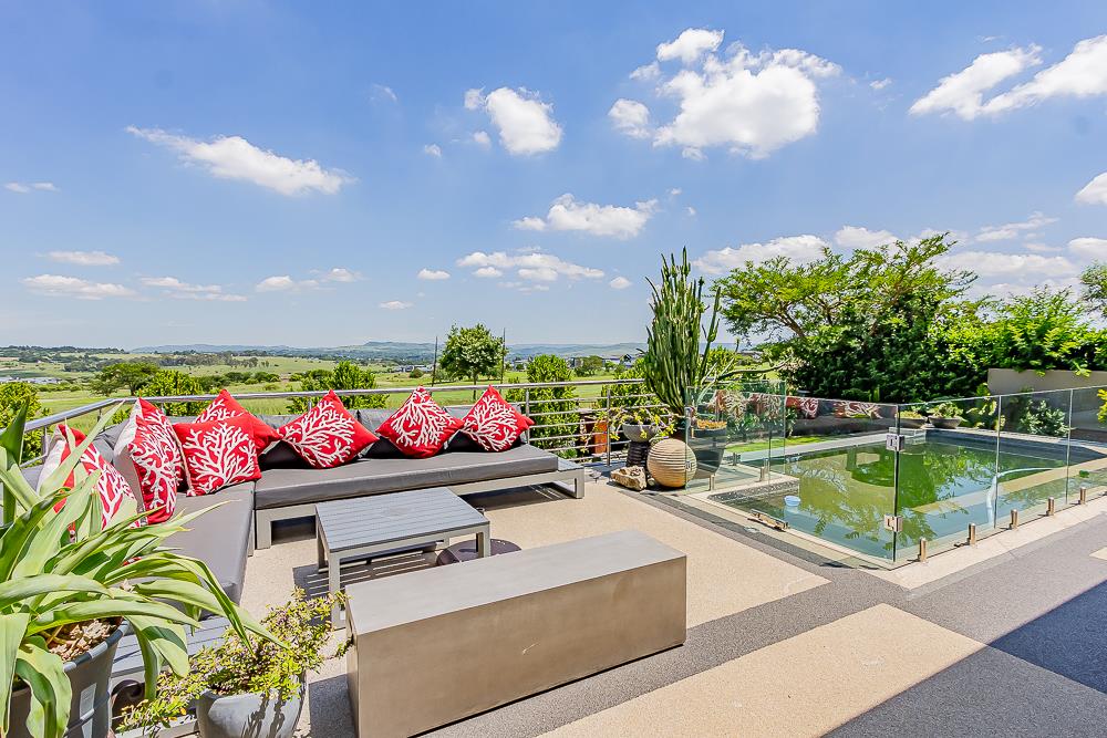 Modern, clean, uncluttered. Architecturally designed, this home is a must view for the discerning buyers. The home is designed with comfort in mind, as you enter through the front door you get the feeling of space with views of the golf course and mountains. The living spaces have an open plan floor plan with a gas fireplace dividing the lounge and dining room, both opening onto a large covered patio with stack doors. A spacious modern kitchen with a gas top and eye level ovens, ample working space, the kitchen also offers a large walk-in pantry with a scullery and separate laundry. The covered patio has a built-in bar area complete with a fridges and a Keg, it also hosts a built-in braai, this covered patio opens onto the deck with stack doors flowing seamless to the inviting pool and garden. The home offers 4 generous bedrooms all en-suite, all the bedrooms opens onto the garden. The main bedroom has a huge walk-in closet with a spacious main bathroom, designed with luxury in mind. The home also offer 4 garages.