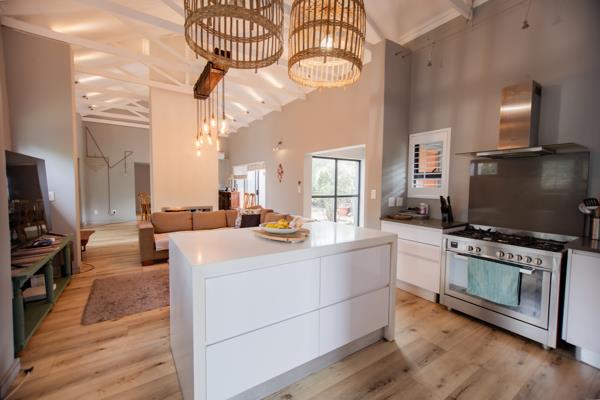 Symmetry, comfort and style are the words that immediately comes to mind when describing this family home. The spaces in the house flows. The house was built with family and the view in mind. The floor plan utilizes the views from the living area and outdoor covered entertainment area, this results in a very open-plan feeling, where you really feel the extent of the house as you come through the front door. The large covered patio offers that inside outside living with the most spectacular views. The well-designed kitchen is an entertainers delight, never far from the action. The lounge and dining rooms are spacious with a fireplace for those cosy evenings.