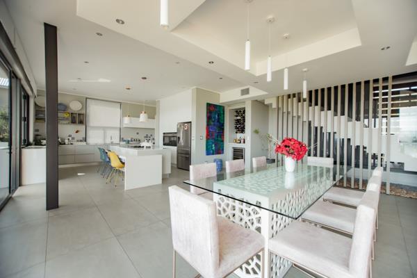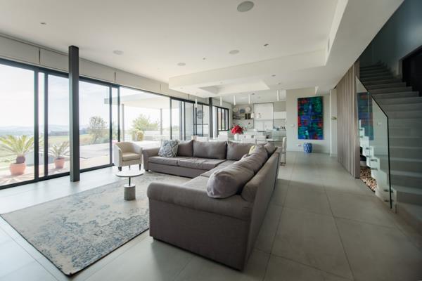 Sophisticated Contemporary Design, step into a masterpiece of sophisticated contemporary design, spanning an impressive 670 square meters across three opulent levels. Be captivated by breathtaking vistas of the lush golf course and the majestic silhouette of the Magalies Mountains. The seamless integration of sleek horizontal lines with the surroundings creates a mesmerizing and soothing ambiance.