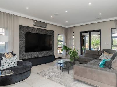 Downstairs has built in surround sound speakers , two lounges , a formal dining room and a stunning gourmet kitchen with separate scullery. Theres an en suite bedroom that has its own privacy with doors opening out to the manicured garden.