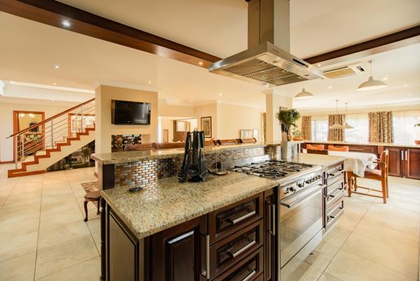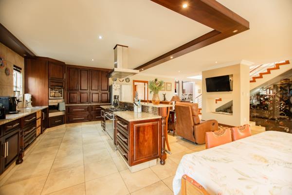 Downstairs, the home opens to generous open-plan living areas, anchored by a chefs kitchen with a separate scullery. The layout includes four versatile living and dining spaces, all seamlessly connected to the enclosed patio and heated pool deckperfect for year-round entertaining.