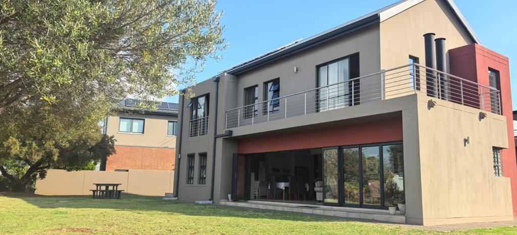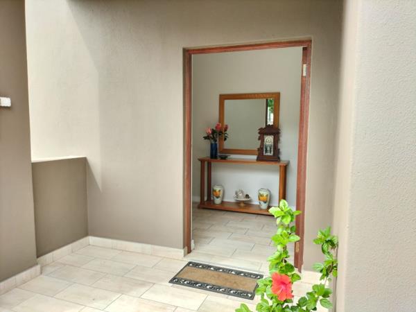 Downstairs you are welcomed by the entrance hall leading to the open plan living areas with gas braai. It has an open feel, inviting nature right into your home through the stackers opening onto the garden.