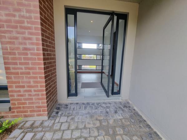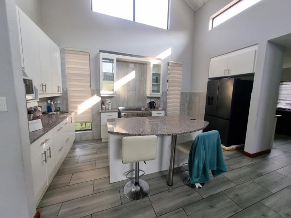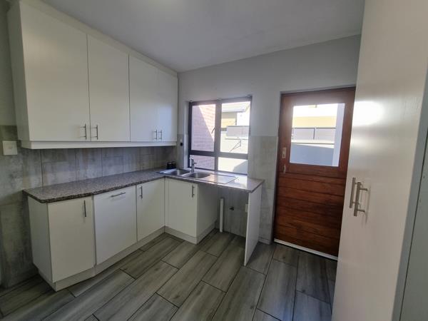 Modern kitchen with space for double door fridge and gas stove, scullery with bic and space for 3 appliances