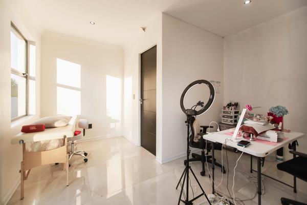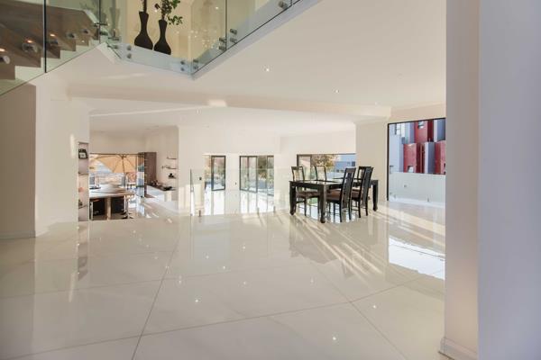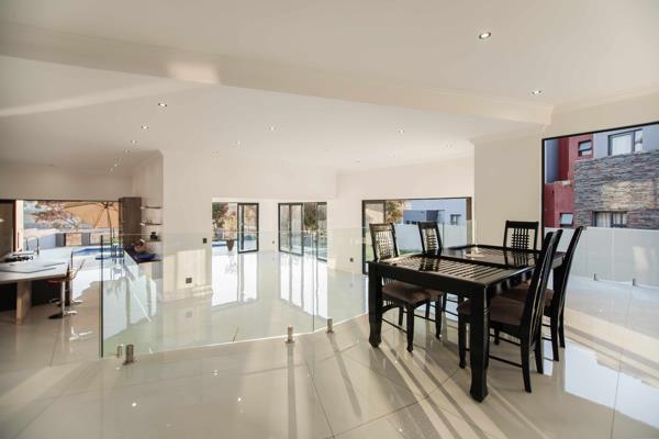 The gourmet kitchen, equipped with top-of-the-line appliances, boasts an open layout that seamlessly connects to the outside entertainment area. Enjoy the stunning pool deck and a lovely boma, perfect for entertaining guests and taking in the serene views.