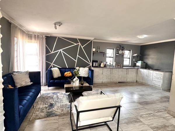 - Spacious open-floor plan living area featuring:
