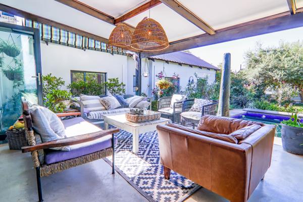As you enter, youre welcomed by a spacious open-plan kitchen, dining, and living area, complete with a cozy built-in fireplaceideal for those chilly evenings. Large stacking doors open onto a covered patio with a built-in braai, perfect for entertaining while enjoying views of the sparkling pool and beautifully maintained park just beyond your backyard.