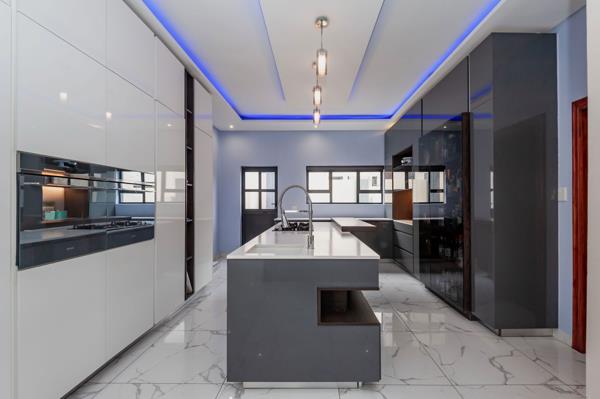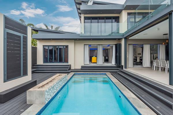 For Sale: Exceptional 6-Bedroom Home for sale in Copperleaf Golf Estate. This expansive and modern 6-bedroom home is thoughtfully designed for luxurious living and effortless entertaining. The outdoor area features a stunning rim-flow swimming pool, a built-in gas braai, as well as an outdoor shower and separate toiletperfect for relaxed poolside days.