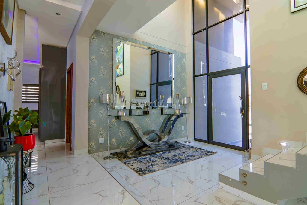 Ideal for entertaining, the home flows seamlessly onto a generous pool deck featuring a built-in braai, fire pit, and a convenient outdoor cloakroom for guests.