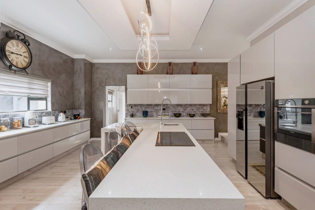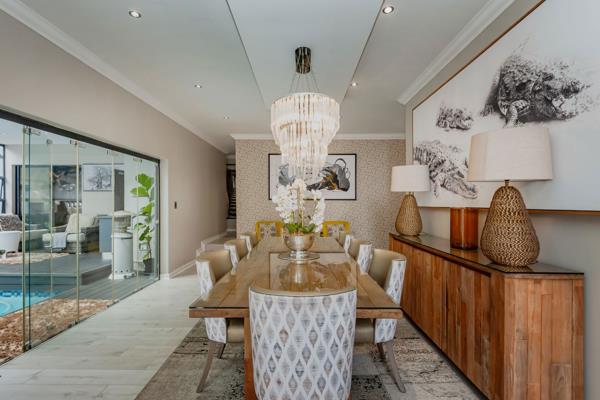 Modern 5-Bedroom House For Sale in Copperleaf Golf Estate. This architecturally designed home is a true statement of style and sophistication, finished to perfection with sleek cemcrete and striking feature walls throughout.