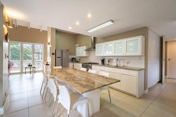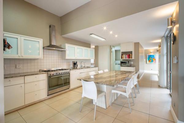 The gourmet kitchen is as practical as it is elegant, equipped with granite countertops, a premium SMEG gas hob with electric oven, and a built-in 810-seater dining islandperfect for family meals and entertaining. A separate scullery and laundry room add everyday convenience.