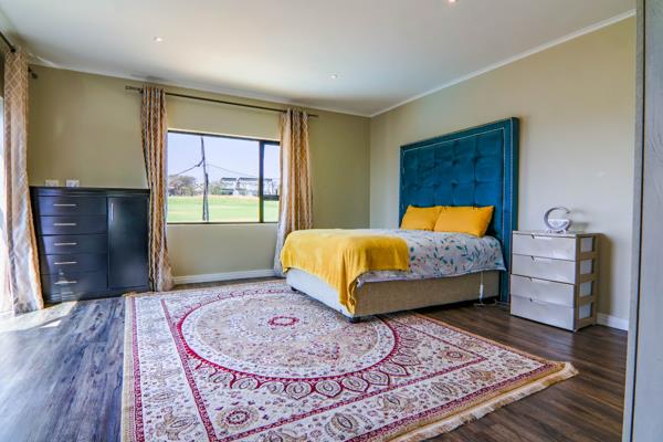 Designed for easy entertaining, the home boasts three bright and airy living areas that flow seamlessly onto the covered patio, sparkling pool, and expansive garden with stunning fairway views. The open-plan kitchen is the heart of the home, featuring ample storage, a central island, and a separate scullery with space for three appliances.