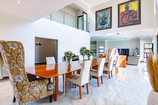 Subtly influenced by European design yet deeply rooted in its South African setting, the home celebrates light, space, and seamless integration with the outdoors. Expansive windows and sliding doors invite natural light throughout, while open spaces create a continuous dialogue between inside and out. The interplay between the ground and first floors adds a dynamic dimension, making the home both inspiring and highly livable.
