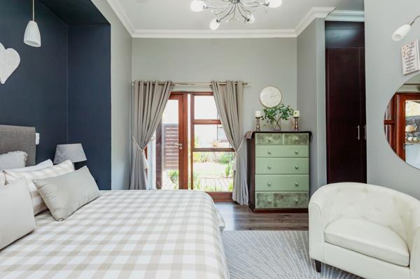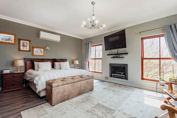 Upstairs youll find four bedrooms, including a luxurious main suite with ample cupboard space, a large bathroom, and a balcony overlooking the fairway.