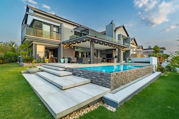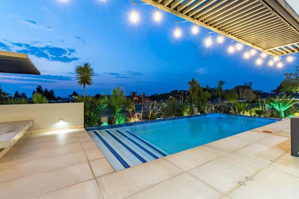 An infinity-edge pool offers seamless beauty and functionality, supported by separate pumps and filters housed discreetly in a dedicated pump room. Independent solar geysers with monitoring systems, an Alpha ESS Smile5 solar system, and back-up water tanks ensures uninterrupted comfort and efficiency.