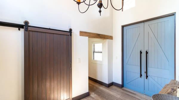 Covered patio with shutters and built in braai