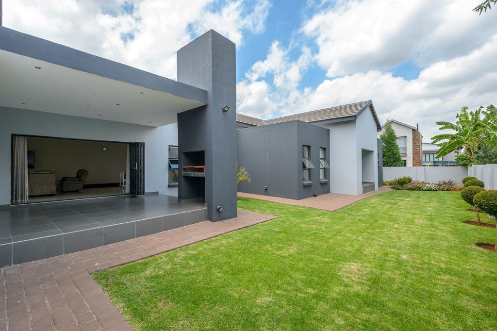 4 Bedroom House for Sale in Copperleaf Estate. This stunning property presents a harmonious combination of sophistication and functionality in the prestigious Copperleaf Golf Estate. The house boasts high ceilings and stacking doors that seamlessly connect the interior to a spacious patio with a built-in braai, offering an ideal setting for entertaining and relaxation. The expansive garden space surrounding the property is perfect for pets and children to play, providing a serene backdrop to this home.