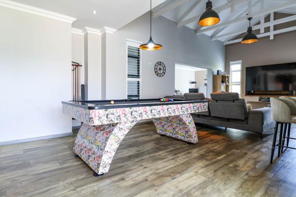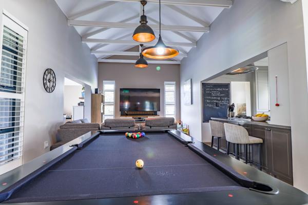A striking entrance welcomes you into versatile living areas that flow seamlessly to a fully enclosed patio with a built-in braai, perfect for year-round entertaining. From here, step out onto the pool deck and into a meticulously manicured garden that opens directly onto a spacious greenbelt, creating a serene, nature-filled backdrop.