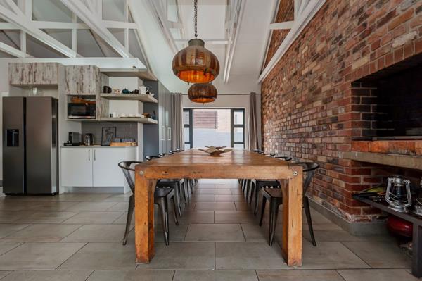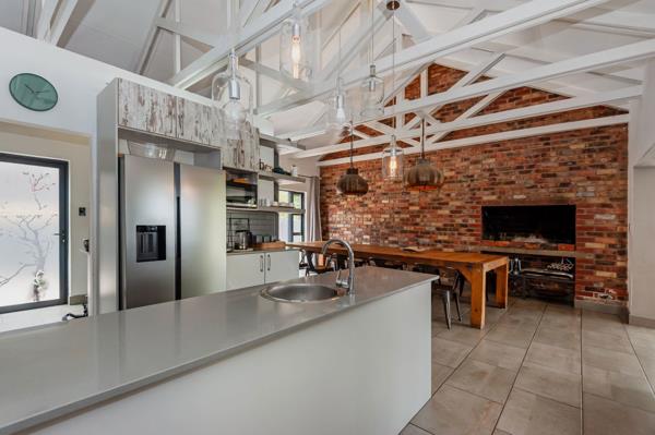 The heart of the home is the spacious dining area and indoor braai room, conveniently located next to the kitchen creating the ideal setting for memorable gatherings with family and friends. The kitchen is complemented by a generously sized scullery with ample space for appliances and extra storage.