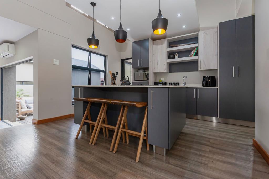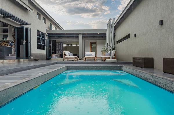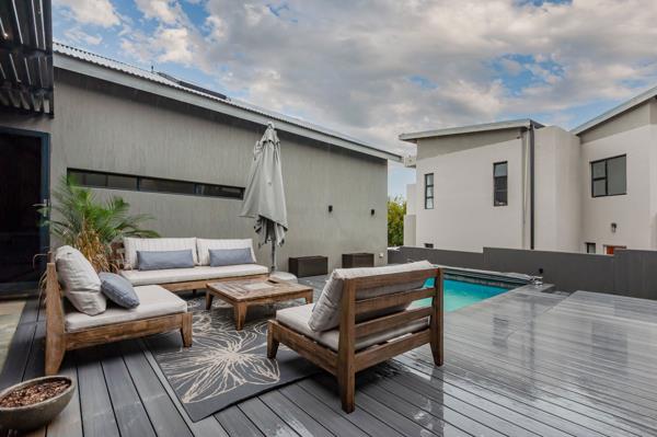 Stacker doors open onto an expansive deck with a sparkling poolideal for enjoying sunny days. The entertainment area is a standout feature, complete with a built-in bar, braai, prep bowl, and ample storage. It opens directly onto the pool area and connects easily to the kitchen, making entertaining both convenient and enjoyable.