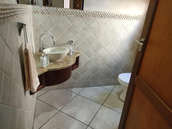 The heart of the home is the expansive open-plan kitchen, dining and family room. Featuring mahogany cabinetry, granite countertops, a breakfast island, gas hob, double-door fridge, wine coolers, prep bowl and a separate scullery, the kitchen is a culinary dream. The living room is anchored by a gas fireplace and a built-in library, creating a warm and inviting atmosphere.