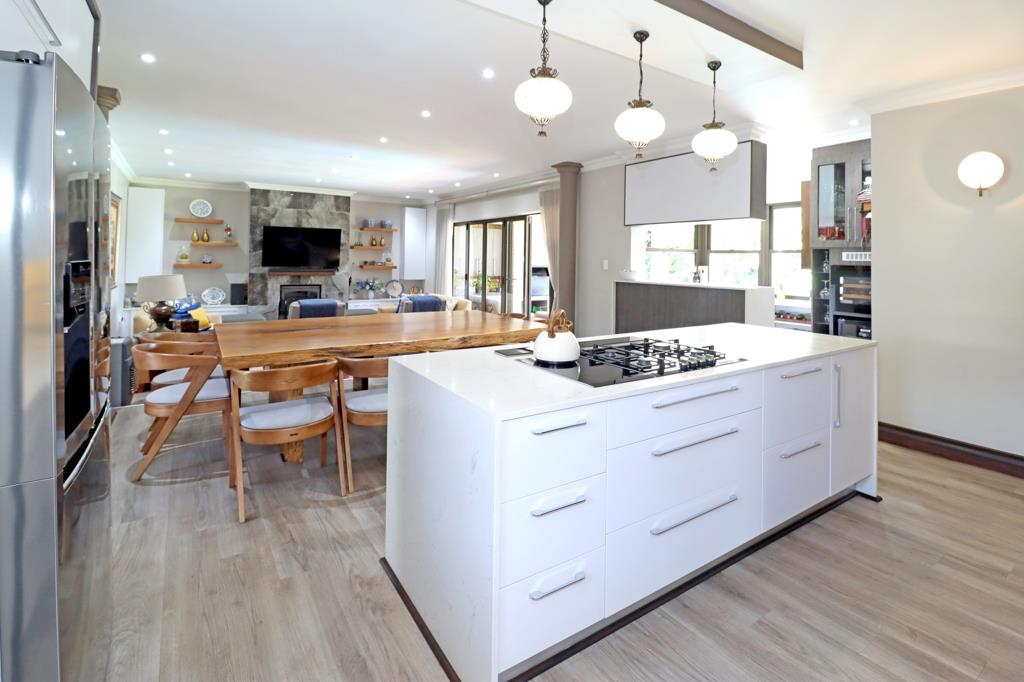 The well-designed open-plan kitchen is complemented by a separate scullery, offering ample cupboard space.