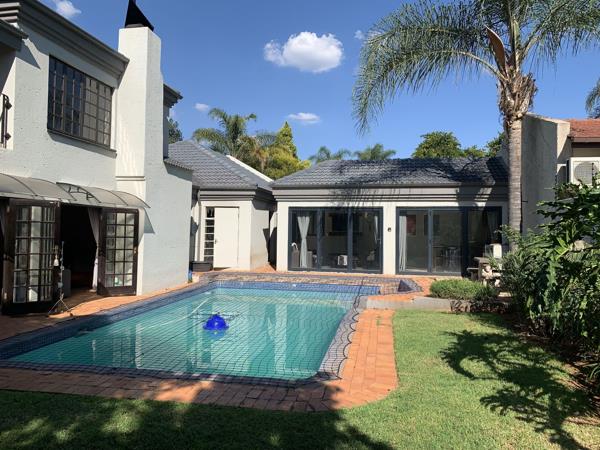 The three bedrooms are upstairs, consisting of a babychildrens room next to a bathroom with a bath, shower, basin and toilet. Next to the bathroom on the right is a spacious second bedroom with a walk-in closet. A small study is situated on the right-hand side of the second bedroom, and this has a balcony overlooking the beautiful garden and swimming pool area. The Master bedroom is extremely spacious and has its own en-suite bathroom fitted with a shower, bath, toilet and basin. The house has an alarm system, as well as electric fencing and a back-up generator for power outages. The home as lovely finishings throughout as well as beautiful chandeliers. Please contact me for a private viewing.!