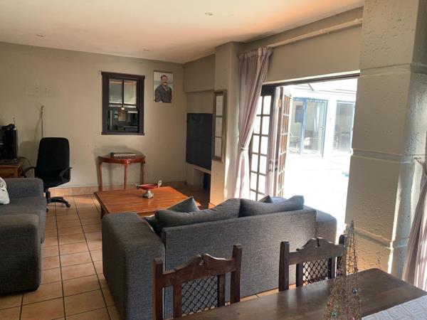 This Entertainers dream is situated in the lovely leafy suburb of Eldoraigne. Do not miss out on this opportunity! The home is entered through an entrance hall into a family room lounge area leading to a separate study on the right. This can easily be used as a fourth bedroom by adding cupboards, as it is next to a bathroom consisting of a bath, toilet and basin.