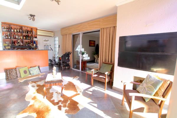 Enjoy multiple living spaces including a lounge, dining room, and entertainment area with built-in bar and braai, all flowing to a sparkling pool. The kitchen features a pantry, scullery, and serving windows, deal for family living and entertaining.