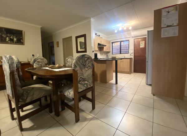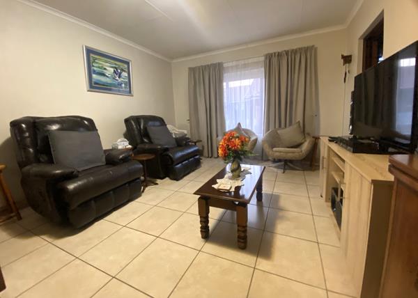 The home offers 2 spacious bedrooms, 2 bathrooms, storeroomstudy, 1 garage, undercover patio area with small garden. The home is tiles throughout. The main bedroom has its own en-suite bathroom. On entering the home, you step into a light, bright open plan living area leading to the beautiful kitchen with plenty of space for 2 appliances and a refrigerator. The garage has plenty of space for a double door fridge, freezer or even a top-loader washing machine. The living area connect seamlessly with your own private stunning undercover patio entertainment area. Why not enjoy an early morning cuppa coffee while listening to the birds dawn chorus. This home is freestanding and well situated near a park for grandkids visits. Plenty of space to entertain your family, friends, or neighbours.