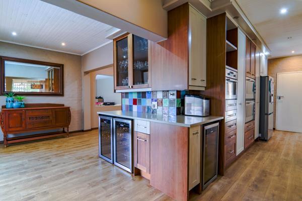 The heart of the home is a spacious, state-of-the-art kitchen, boasting a walk-in pantry and scullery. An impressive bar area with three built-in bar fridges and space for a coffee bar makes entertaining effortless. Top-tier appliances include a built-in microwave, double ovens, and a 5-plate gas hob, ensuring a chefs dream experience.