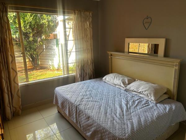 This beautifully spacious 2-bedroom, 2-bathroom townhouse is located in the highly sought-after complex in Eldoraigne. Designed with comfort and space in mind, the unit also features an additional TV room that can easily be used as a second lounge or home office. The open-plan layout combines a light-filled living and dining area with a kitchen, creating a warm and welcoming space ideal for entertaining or relaxing.