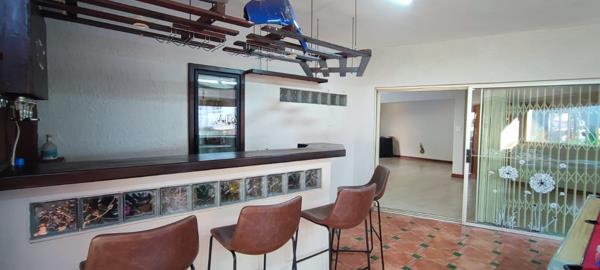 The home is built for entertaining, with an indoor braai and bar area that opens onto a beach-style bar, pizza oven, boma, jacuzzi and sparkling pool all set in a tranquil garden.