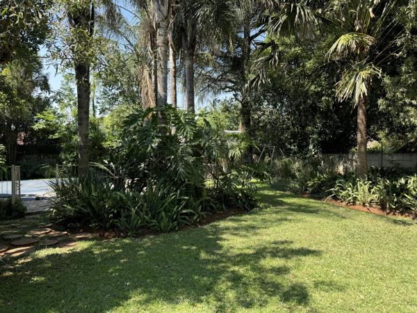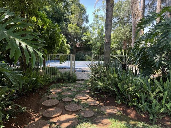 Sparkling swimming pool and established garden with borehole & irrigation system