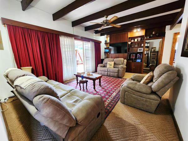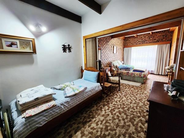 The home offers two bright living areas, a dining area, a study and a stoep, all leading out to a beautifully kept garden with a water-pressure pump and a welcoming braai area, perfect for entertaining.