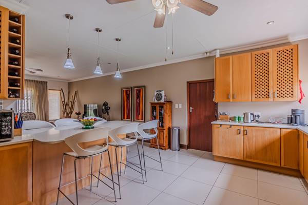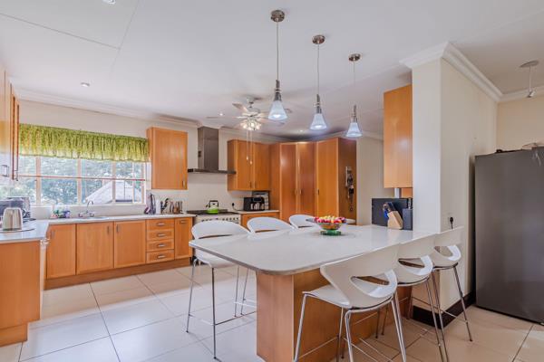 Outdoor living is a delight with a sparkling pool, wide open lawn, and a charming thatched lapa with a built-in braai, perfect for weekend gatherings.