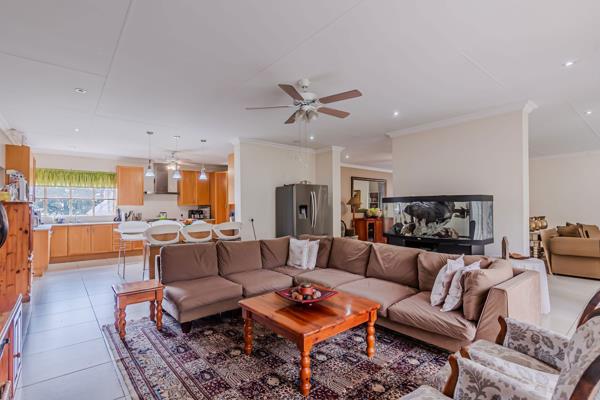 The well-appointed kitchen flows seamlessly into the dining and living areas, creating a warm welcoming atmosphere.